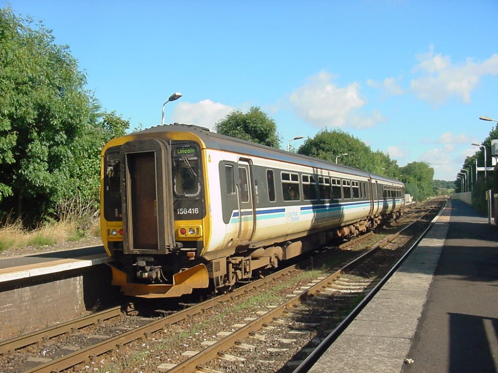 Central Trains livery class 156 two-car diesel multiple unit No.156416 arriving at Blakedown on the 09:40 from Hereford to Lincoln.