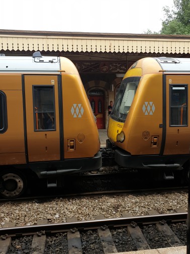 West Midlands Trains wasted no time in using them on the hourly inter-city express from Birmingham to Hereford. These photographs, which were taken by Andrew Smith on Thurday 1st July 2021, show Nos.172004 and 172005 with the 13.50 to Hereford (train code No.1V28).