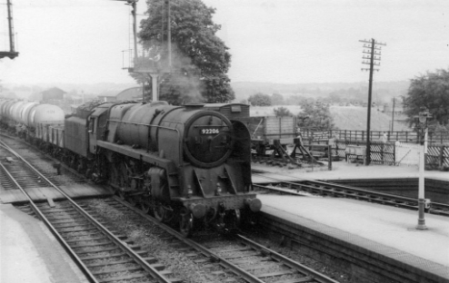 Bromsgrove's large locomotive towards the end of the use of steam banking locomotives at Bromsgrove was No.92230.