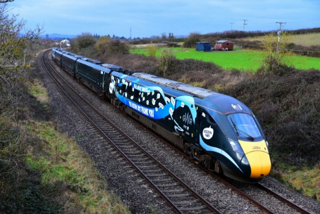 On 7th February 2021 class 802 set No.802020 made a brief visit to the county arriving with the 12.46 from London Paddington to Worcester Foregate Street. Steve Widdowon took this photogaph as it returned to London with the 15.15 train (code No.1P63). A good cause but an awful livery.