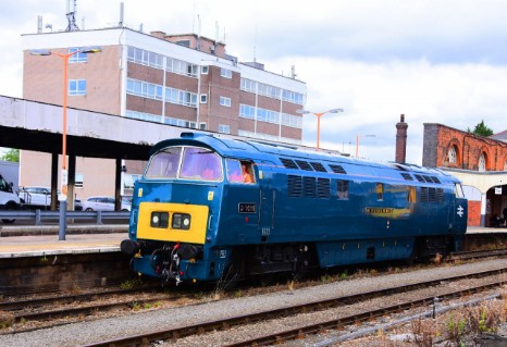 On 17th September 2021 preserved class 52 diesel No.D1015 "Western Champion" worked back from Gloucester to Kidderminster (SVR) via Worcester Shrub Hill where it was photographed by Steve Widdowson. Earlier it had been used to bring a cement train to Gloucester as part of an assessment for main line running.