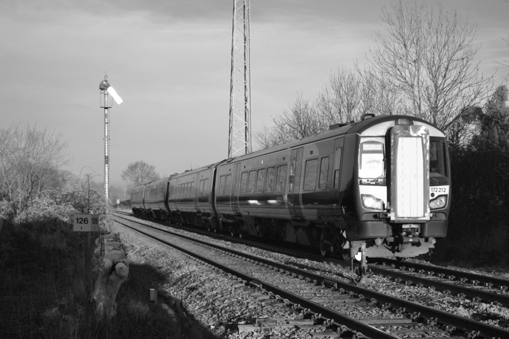 Here is fifth in the now-traditional series of black and white season enders of train No.2V30 (13.19 Whitlocks End to Great Malvern) at Newland East Signal Box. In the 2015 photograph the train was operated by a three-car class 172 diesel multiple unit but in 2016 it reverted to a pair of class 172/2 units. Nos.172216 and 172212 were photographed by Andrew Smith on 30th November 2016.
