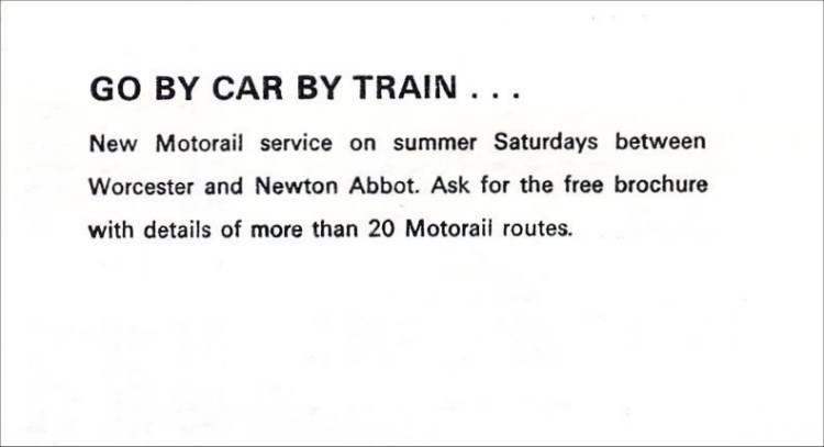 From the same timetable is an advert for the new 'Motorail' service to Newton Abbot.