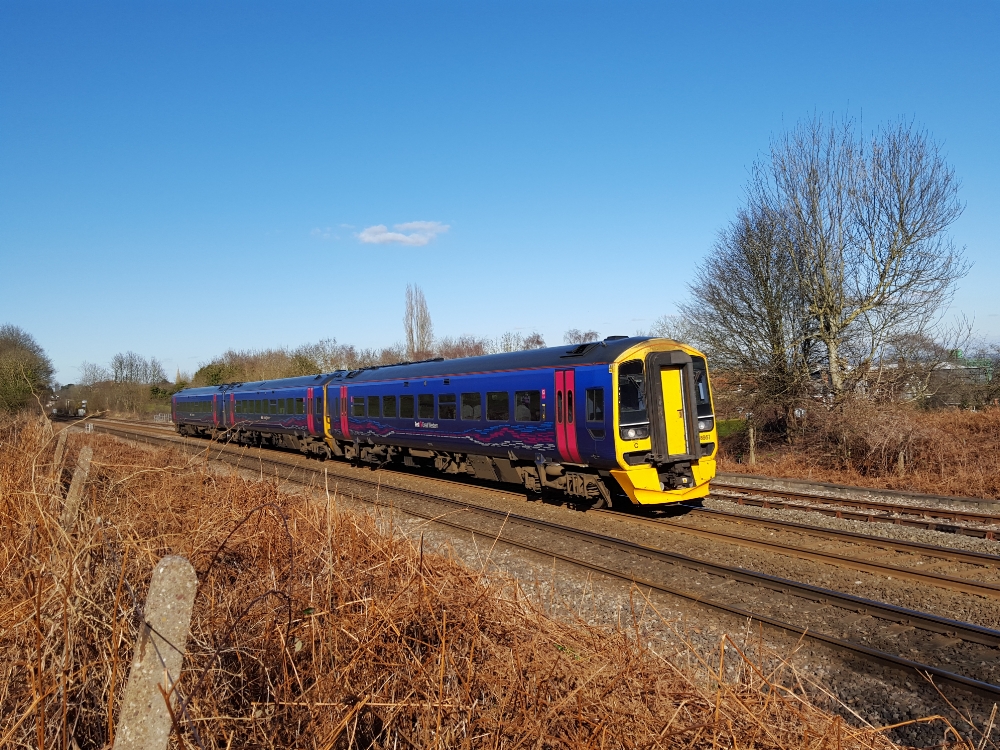 Class 158/9 three-car diesel multiple unit No.158957 with the empty stock from the 08:59 Great Western Railway service from Brighton to Great Malvern is seen at Malvern Wells as train code 5V94 prior to setting back into Great Malvern to work the 1094, 14:50 to Weymouth service. Photographed by Andrew Smith on 7th March 2016.