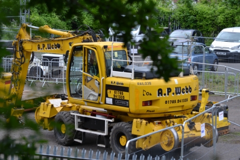 In the summer of 2016 the long-disused area came into use again as a compound for a major track renewal programme at Malvern Wells. An access point was cut into the trackside fencing to allow on track plant access to the main line from the compound. Numerous engineering trains were run in conjunction with these works and two can be seen in the above photographs.