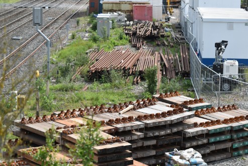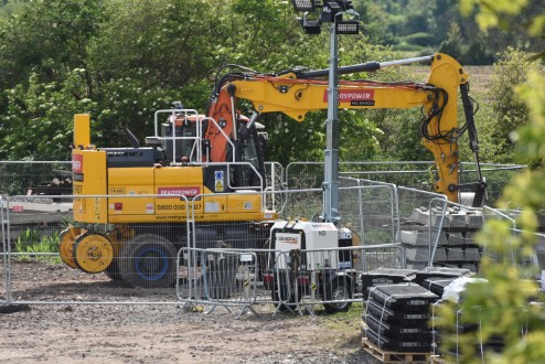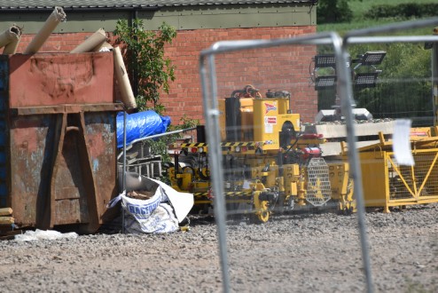 The first major use of on-track plant in Worcestershire in 2019 took place over two weekends in May 2019. Colas Rail was the main contractor and it set up a major site at the Spetchley track access point. Many items of on-track plant were used whilst trains were replaced by buses or diverted through Worcester. At Spetchley, Colas provide site works offices, rest rooms and toilets etc using a variety of portable buildings. The position of these buildings and the plethora of plant and equipment on the site made for difficult photography but once items started being removed on Monday 20th May 2019 Andrew Smith was able to take the photographs below.