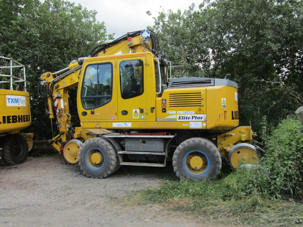In connection with work to improve visibility of the signals and for ballast laying there were numerous overnight possessions at Newland East Signal Box and the Stocks Lane Level Crossing during June 2017. On the morning of Thursday 15th June 2017 Andrew Smith was able to take this photograph of No.940674-3 (TMX Plant's No.6893). This is a Liebherr Elite Plus road/railer upgraded by Alan Hargreaves Plant Enginners Ltd.