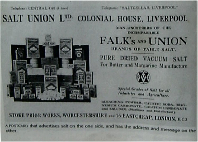 The above photograph is from an advertising postcard produced by the Salt Union Ltd. (Collection of Andrew Smith).