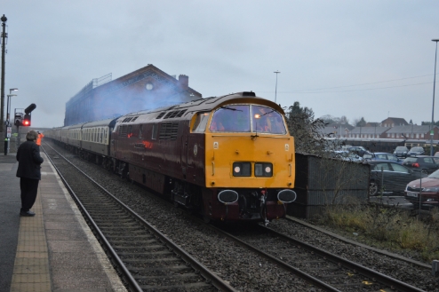 To close out the 2016 season here is the Severn Valley Railway's class 52 diesel locomotive D1015 'Western Champion' arriving at Kidderminster on train code No.1Z17 'Yuletide East Yorkshireman' from Swindon to Scarborough, operated by Pathfinder Tours.
