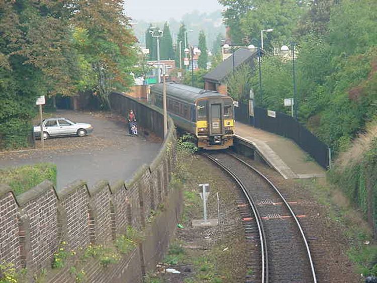 Class 153 railcar No.153363 in Central Train livery is standing in the station. When rebuilt by Centro the platform was re-sited on the opposite side of the line utilising space that once was occupied by a freight line to Stourbridge canal basin. Photograph taken by Andrew Smith on 26th September 2001.