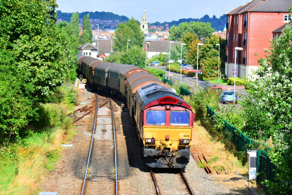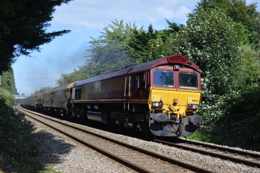Between Monday 8th August 2016 and Wednesday 10th August the Margam to Round Oak loaded steel train and afternoon returning empties were diverted via Malvern and Hereford - a line which does not normally see any freight trains at all. The trains was operated by DB Cargo using class 66 diesel locomotives: No.66126 on Monday, No.66058 on Tuesday and No.66082 on Wednesday. No.66082 was photographed by Steve Widdowson (above) and Owen Morris (below). The photograph of No.66058 was taken by Steve Widdowson and No.66082 by Andrew Smith.