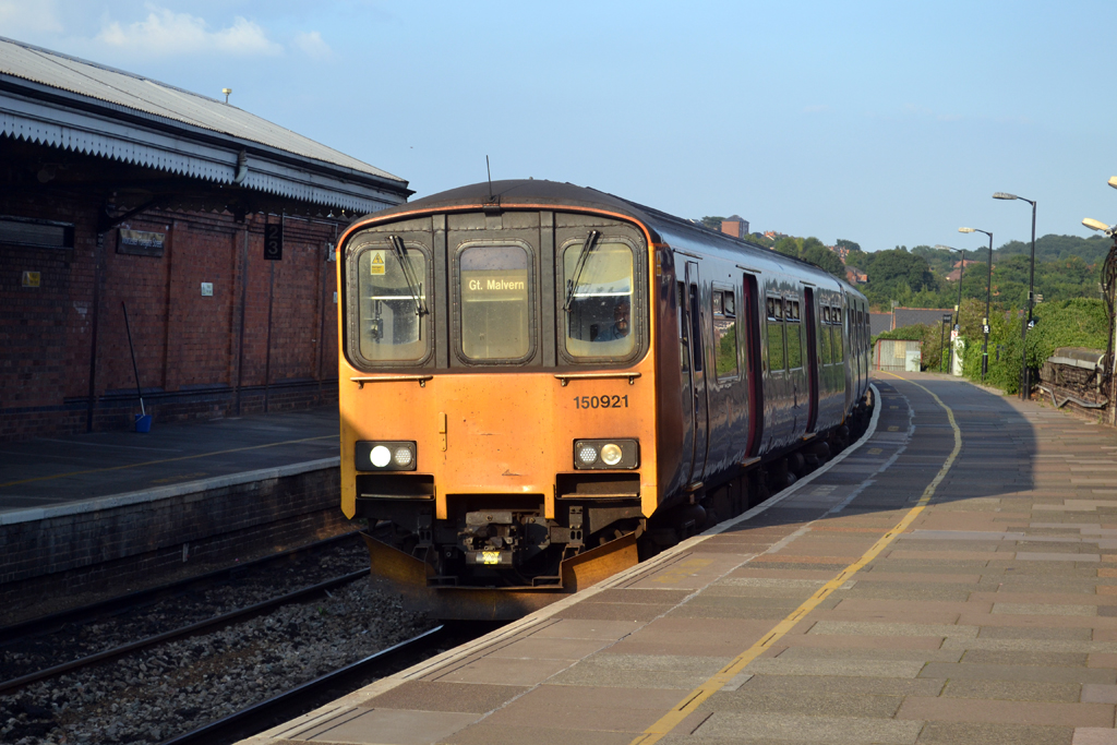 On the evening of 8th August 2013 No.150927 awaits to depart from Great Malvern with the 18:50 service from Great Malvern to