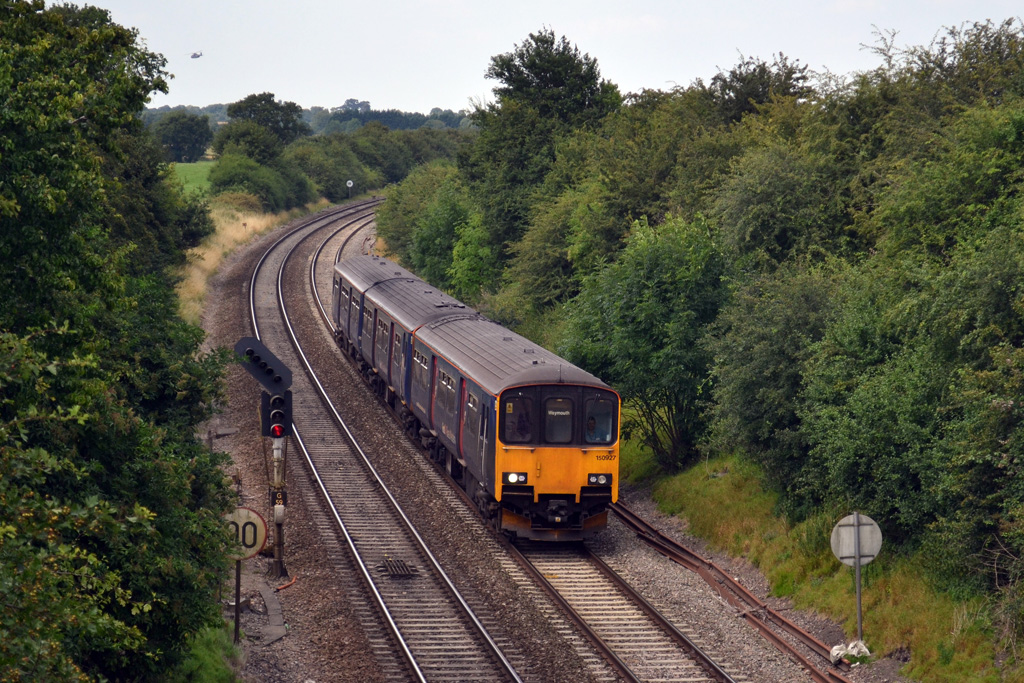 No.150927 passing Abbotswood on a hot and humid day with the 14.50 service (headcode No.2094) from Great Malvern to Weymouth.