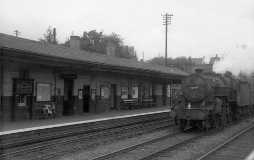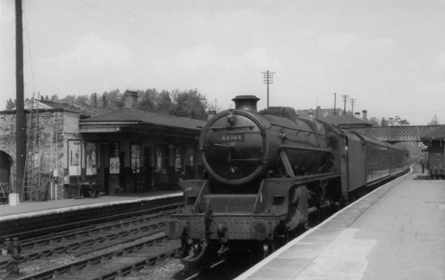 Another familiar Saltley class 5 steam locomotive was No.44944 seen here making a station stop at Bromsgrove on 1st June 1963. The train was probably a Birmingham New Street to Gloucester stopping train.