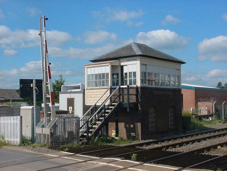 Hartlebury Signal Box was built by Mckenzie & Holland of Worcester in 1875. It was closed in August 2012 and demolished soon after. Photograph taken by Andrew Smith on 4th September 2001.