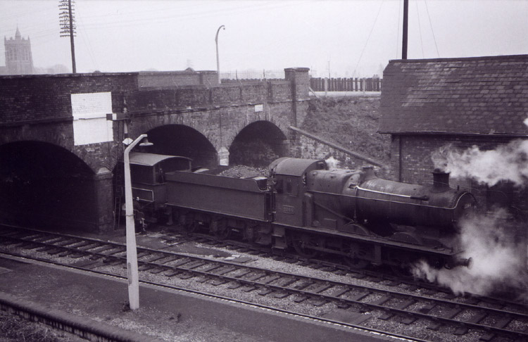 This is Worcester's Collett 0-6-0 steam locomotive No.2244 shunting the sidings at the north end of Malvern Link Station on 7th February 1965.