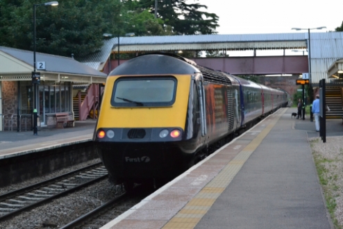 In 2014 the 1960s station was demolished and replaced by "period style" buildings that provide much improved facilities for passengers. Above left: The new 'up' side building can be seen on the left-hand side of this photograph of class 43 "HST" power car No.43172 on the 20.53 from Great Malvern to London Paddington (train code No.1P87) which is running wrong line to the crossover at Newland East because the 'up' line was being used for engineering works on 18th June 2016.