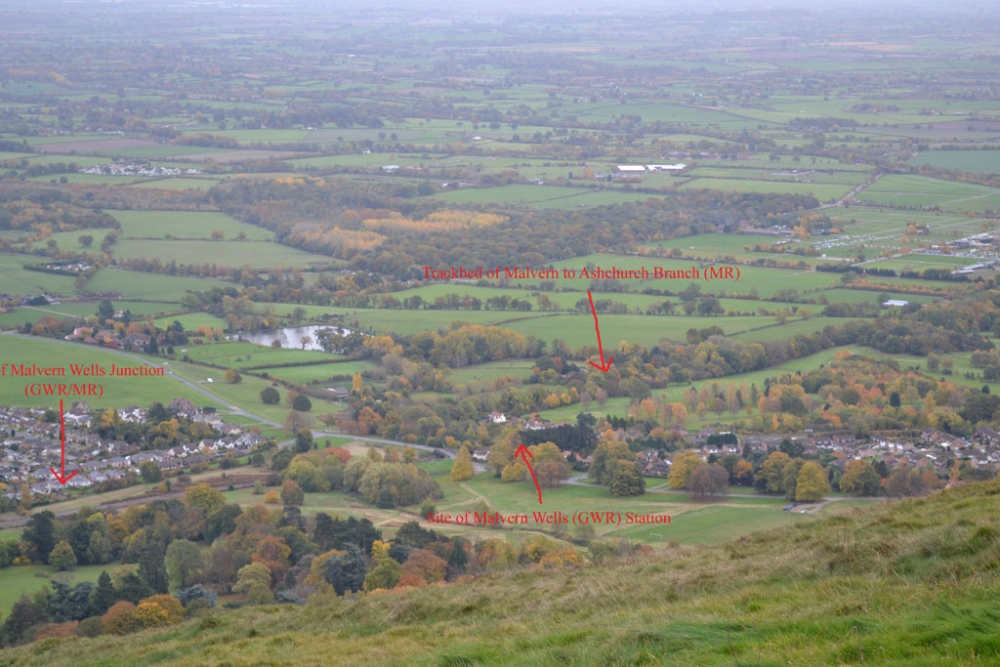 In order to provide continuity with the entries for the stations at Great Malvern and Malvern Wells this page covers the whole of the area south of Great Malvern Station and north of Peachfield Road. Much of this area is open grassland known as Malvern Wells or Peachfield Common. Note that this is a separate entry for New Midland Sidings.