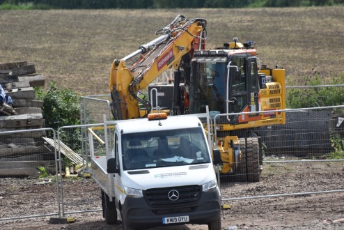 The first major use of on-track plant in Worcestershire in 2019 took place over two weekends in May 2019. Colas Rail was the main contractor and it set up a major site at the Spetchley track access point. Many items of on-track plant were used whilst trains were replaced by buses or diverted through Worcester. At Spetchley, Colas provide site works offices, rest rooms and toilets etc using a variety of portable buildings. The position of these buildings and the plethora of plant and equipment on the site made for difficult photography but once items started being removed on Monday 20th May 2019 Andrew Smith was able to take the photographs below.