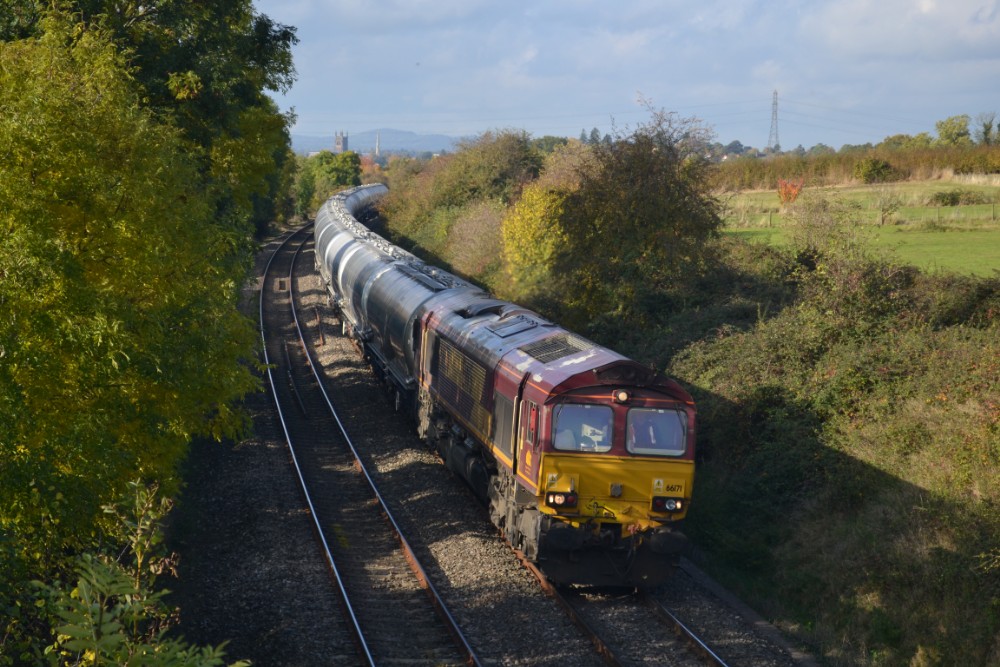 The weather was grim on the first day and following the collpase of freight traffic the only daylight running freight train diverting via Worcester was the Bescot to Avonmouth Hanson tanks, seen at Norton with DB Cargo class 66 diesel locomotive No.66171 in charge. Photograph taken by Andrew Smith.