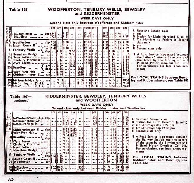 TENBURY WELLS TO BEWDLEY TIMETABLE - 1957-8